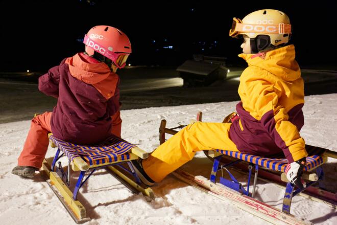 Auf geht's ins Skigebiet Roggenboden zum Skifahren und Rodeln bei Flutlicht.
