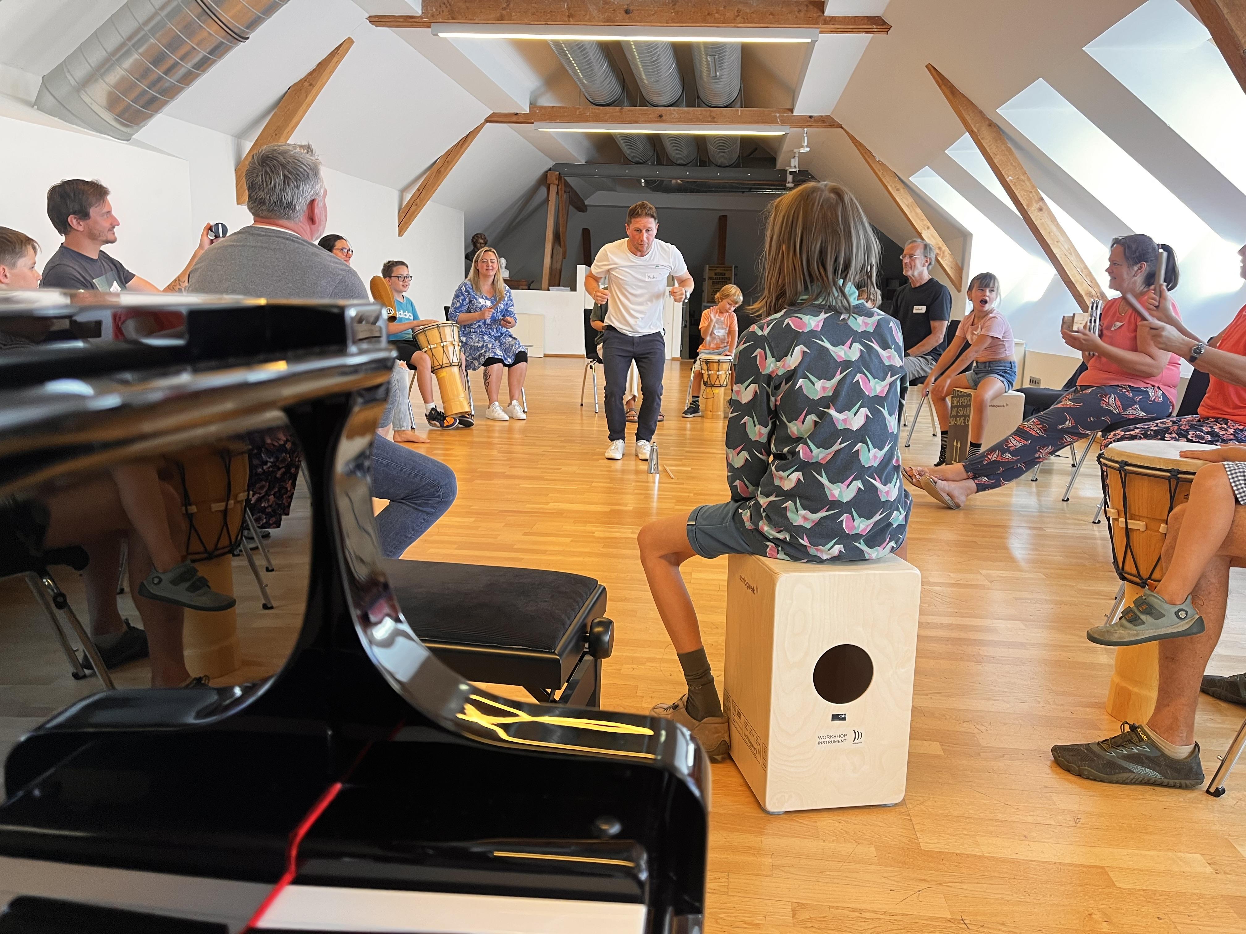 „Good Vibrations“, der sich ganz dem Themen Rhythmus & Percussion widmet. Hier wird gestampft, geklatscht, auf Bongos getrommelt oder mit den Boomwhackers wild durch die Gegend gewirbelt. Hauptsache, man spürt die Energie der Musik bis ganz in die Zehenspitzen. Wer möchte, kann auch ein Teil des Drum Circles werden und gemeinsam mit Freunden ganz neue Rhythmen erzeugen. Für Stimmakrobaten interessant: Der kreative „Audience Choir“, in dem man alles über Harmonien lernt. Rhythmus-Workshops mit Percussion und Drum Circle. Für alle, die Musik bis in die Zehenspitzen erleben möchten!