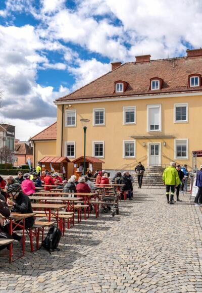 Ausgestattet mit einem Stempelpass (gilt als Gewinnlos) zum Preis von € 15,-, geht es auf dem ca. 46 km langen Rundweg im eigenen Tempo zu den einzelnen Stationen. Dort kann regionale Kulinarik verkostet und die gute Stimmung genossen werden. Neben der Verpflegung wird an den Standorten auch ein buntes Unterhaltungsprogramm geboten.