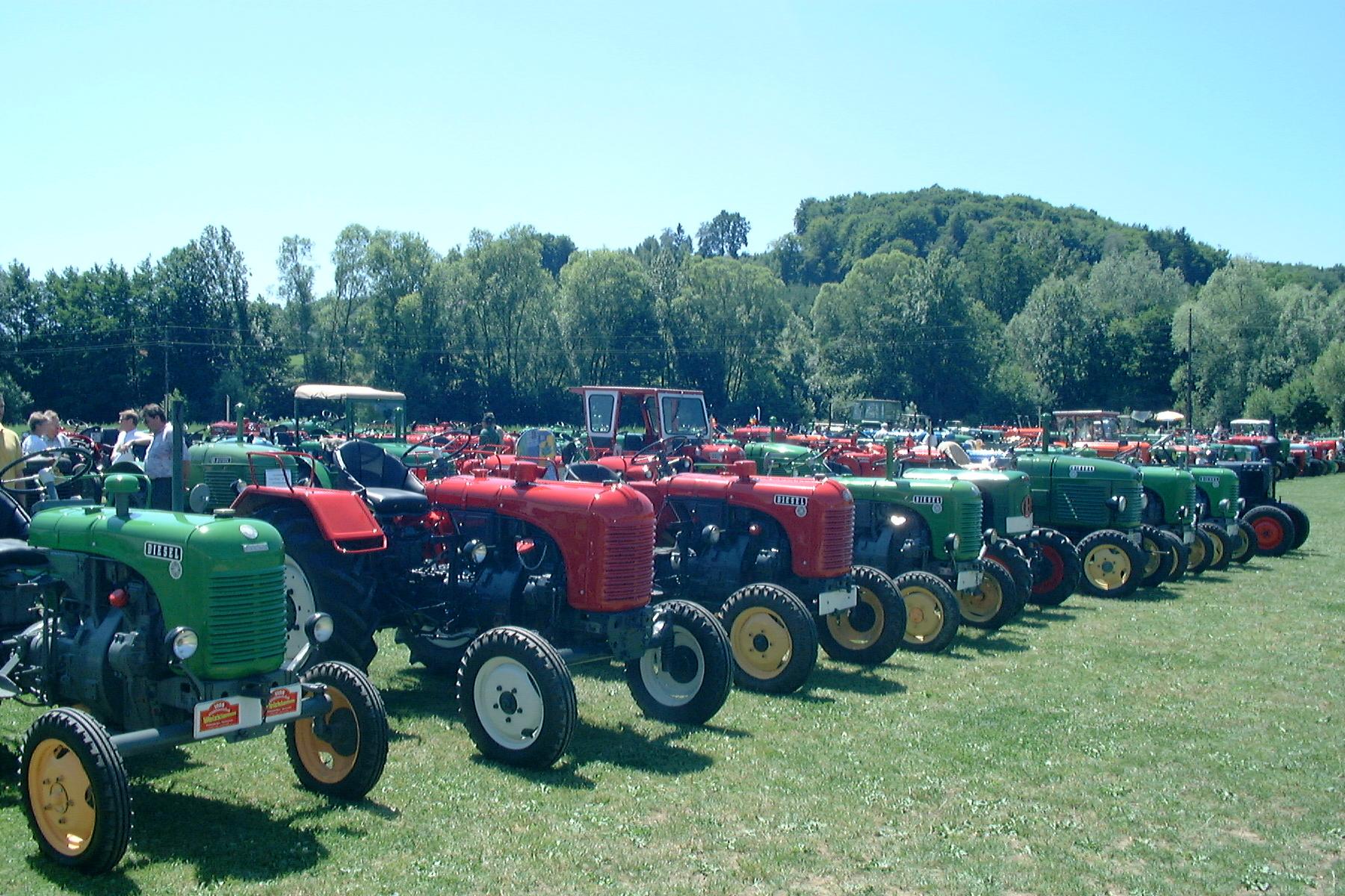 Auf dem alljährlich stattfindenden Oldtimertreffen in Markt Hartmannsdorf kann man mehr als 100 Oldtimer Traktoren bewundern.