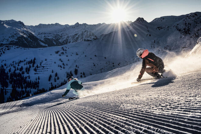 Genieße die unverspurte Piste ganz für dich alleine und lass deine Kanten über die frisch präparierten Hänge gleiten.