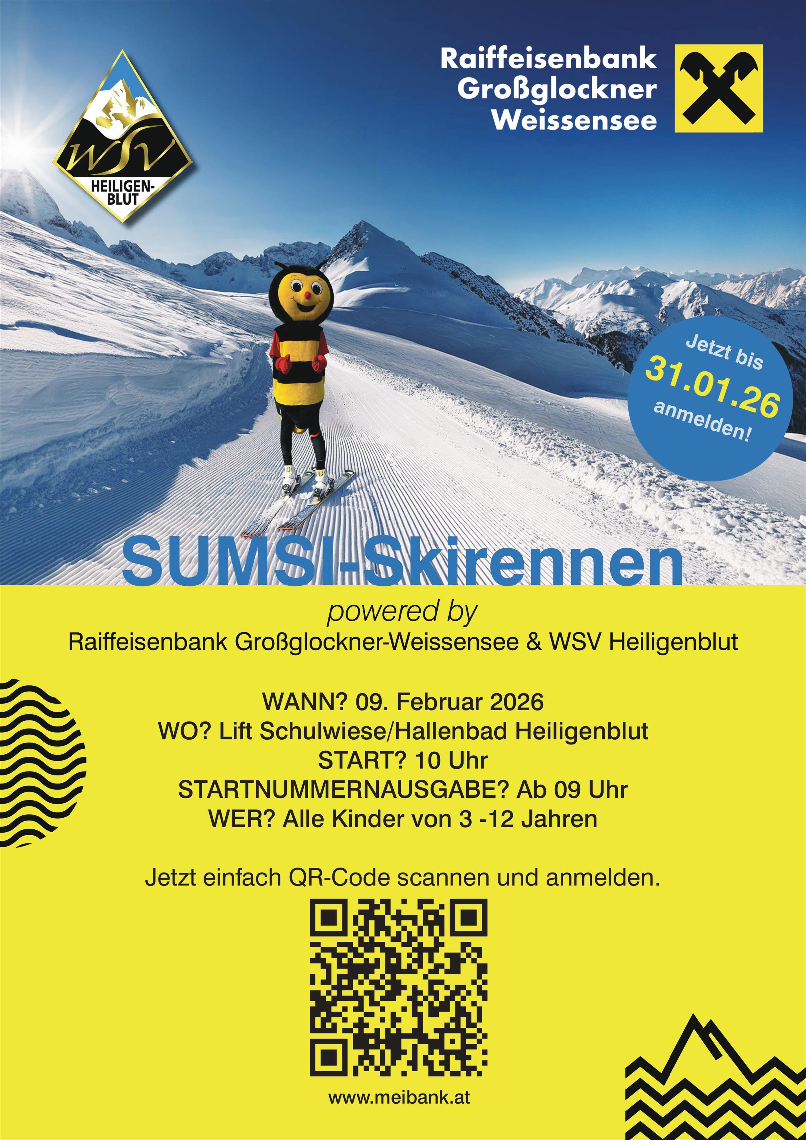 Für alle kleinen Skitalente im Alter von 3 bis 12 Jahren findet am 09.02. das beliebte Sumsi-Skirennen statt.