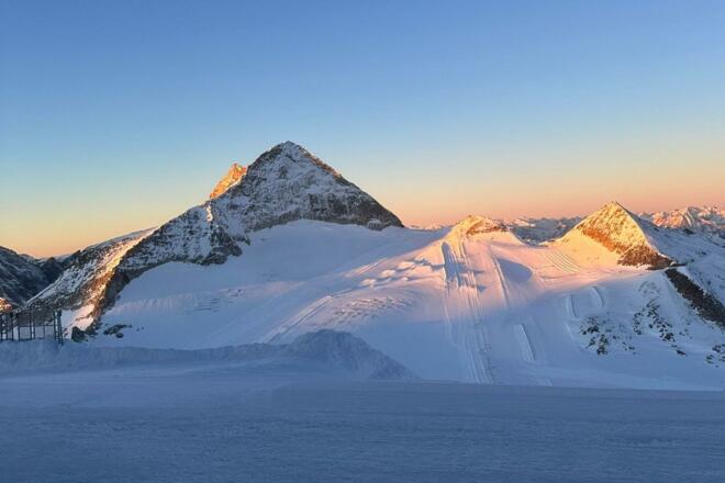 Für die erlesene Gruppe an "Early Birds"geht die erste Gondel bereits um 07.30 Uhr bergwärts. Der weiße Teppich ist ausgerollt, die exklusive Nutzung des Skigebiets den Frühsportlern vorbehalten. Was für ein Gäsehautmoment auf 3.250 m!