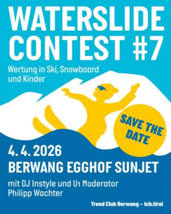 Der legendäre Waterslide Contest Berwang ist zurück und präsentiert sich 2026 wieder als eines der coolsten Events der Saison! Merkt euch den Samstag, 4. April 2026 vor – dann heißt es wieder Speed, Style und Spaß auf der Ski-Piste!