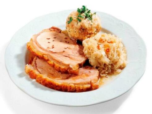 Genießen Sie unseren ofenfrischen, knusprigen Schweinsbraten mit Sauerkraut und Knödel. Lassen Sie sich diesen Gaumenschmaus nicht entgehen.