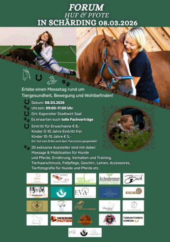 Massage & Mobilisation für Hunde und Pferde, Ernährung, Verhalten und Training, Tierhaarschmuck, Fellpflege, Geschirr, Leinen, Accessoires, Tierfotografie für Hunde und Pferde etc.