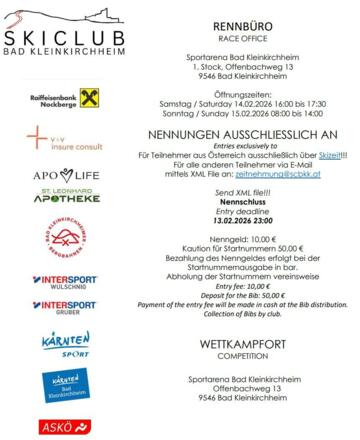 RENNBÜRO: Sportarena Bad Kleinkirchheim (1. Stock), Offenbachweg 13, 9546 Bad Kleinkirchheim