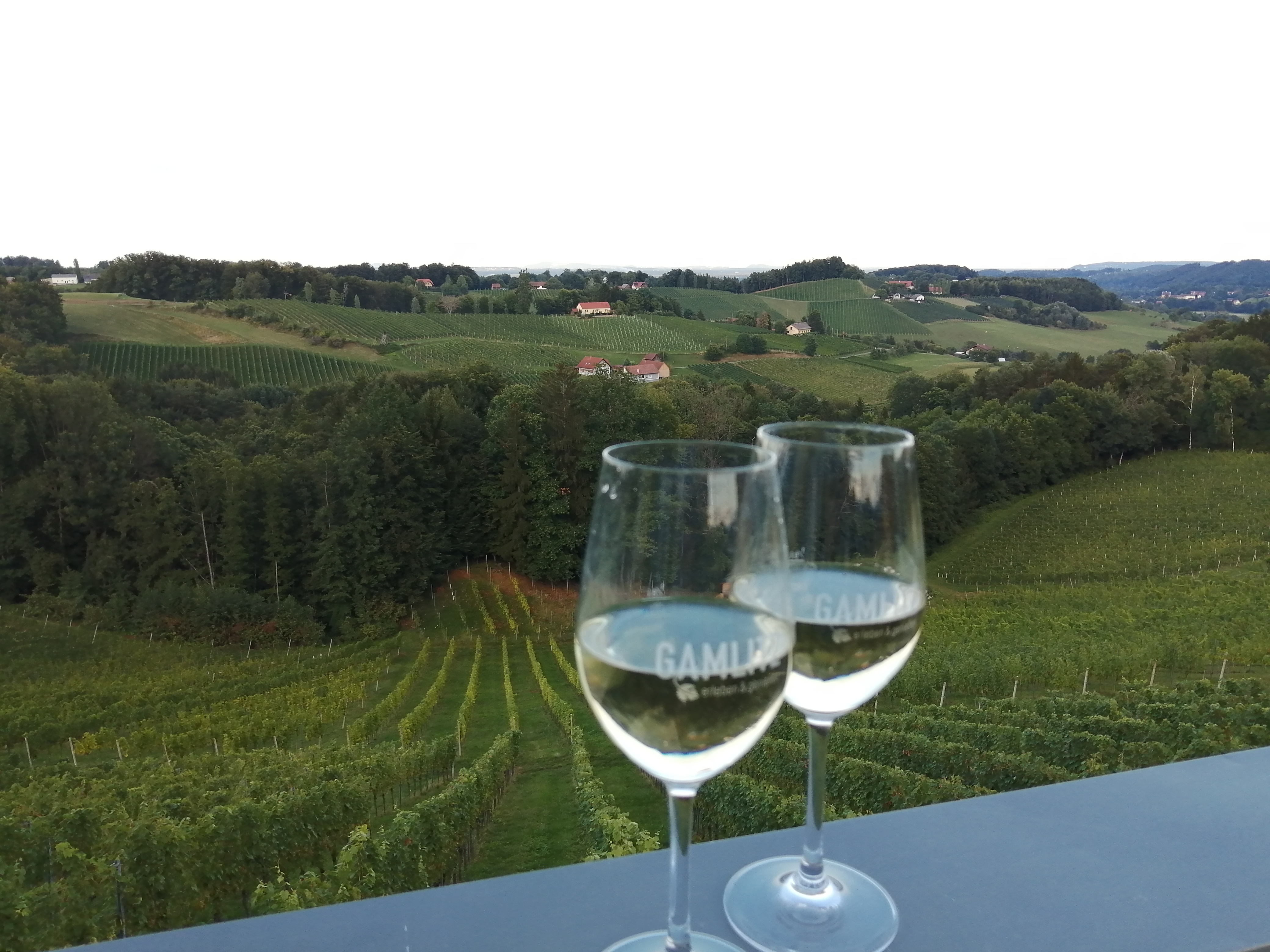 Zwei Weinbauern aus Gamlitz präsentiren ihre Produkte und bieten sie zum Kauf bzw. Genuss vorort an.