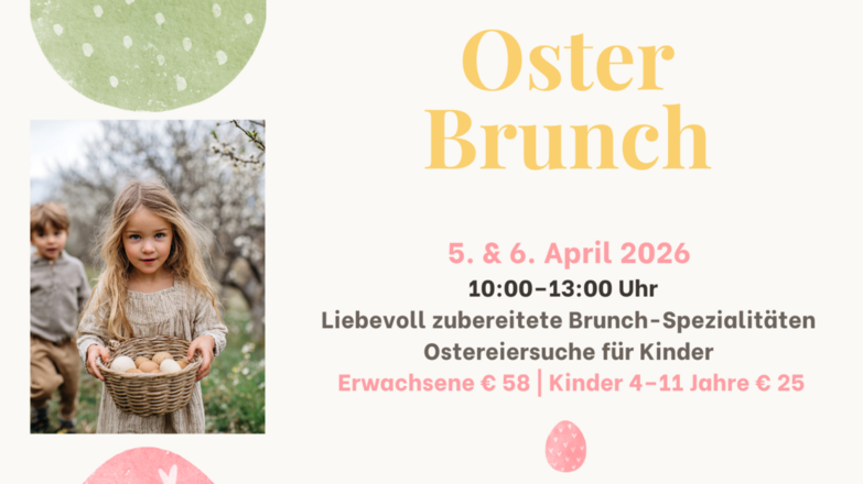 Freuen Sie sich auf liebevoll zubereitete Brunch-Spezialitäten, frische saisonale Köstlichkeiten und ein genussvolles Osterambiente. Für unsere kleinen Gäste sorgt eine fröhliche Ostereiersuche für strahlende Augen.