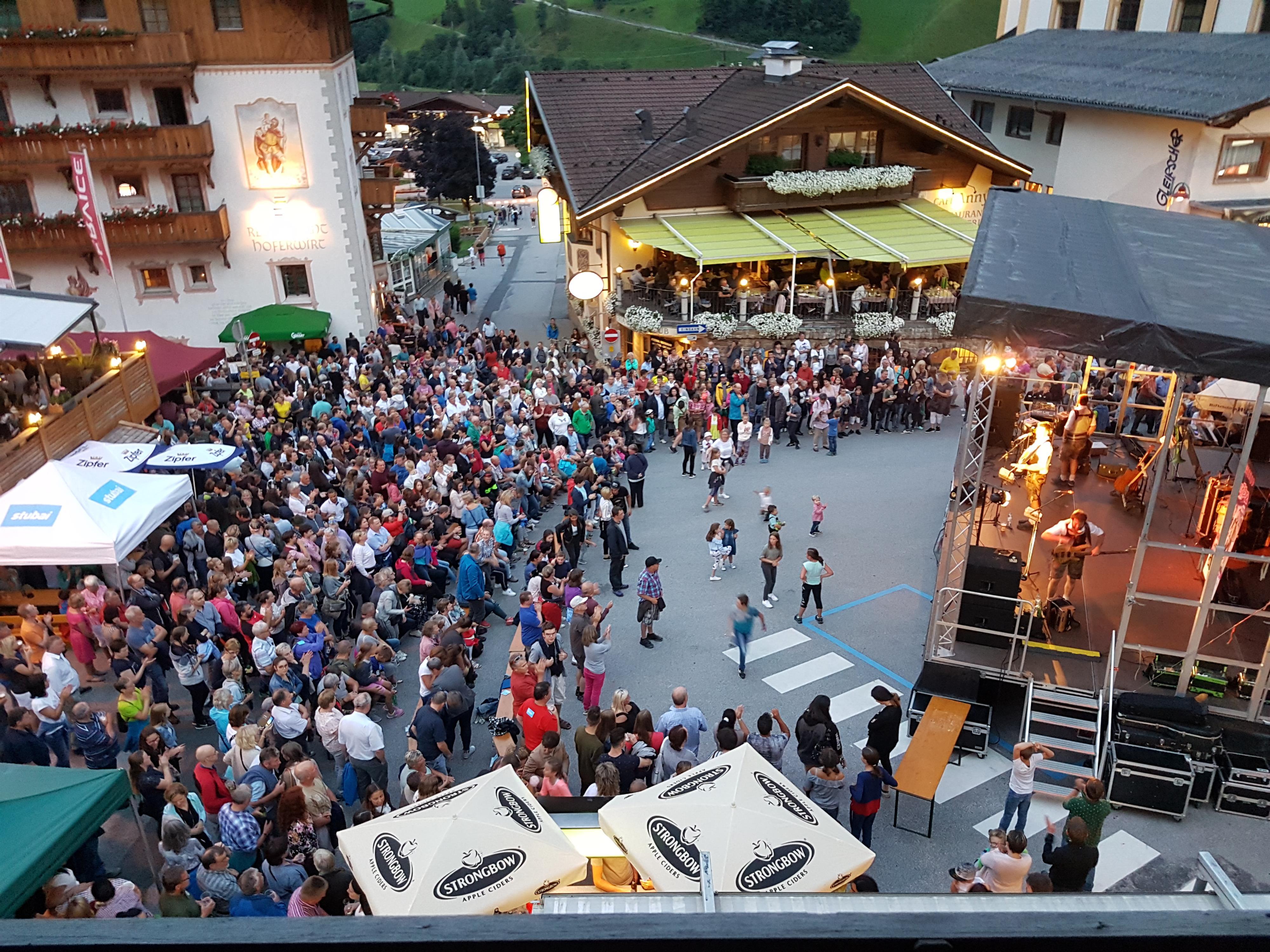 Die gemütliche Atmosphäre des Neustifter Dorfplatzes mit seinen Terrassenrestaurants und einladenden Geschäften bildet die perfekte Kulisse für ein einzigartiges Erlebnis – eine ideale Kombination aus Shopping, Tiroler Schmankerlküche und tollem Sound.