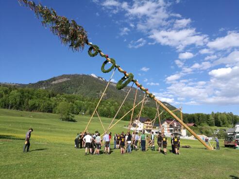 Maibaum umschneiden der Riada Perchten beim Dornerhof.
