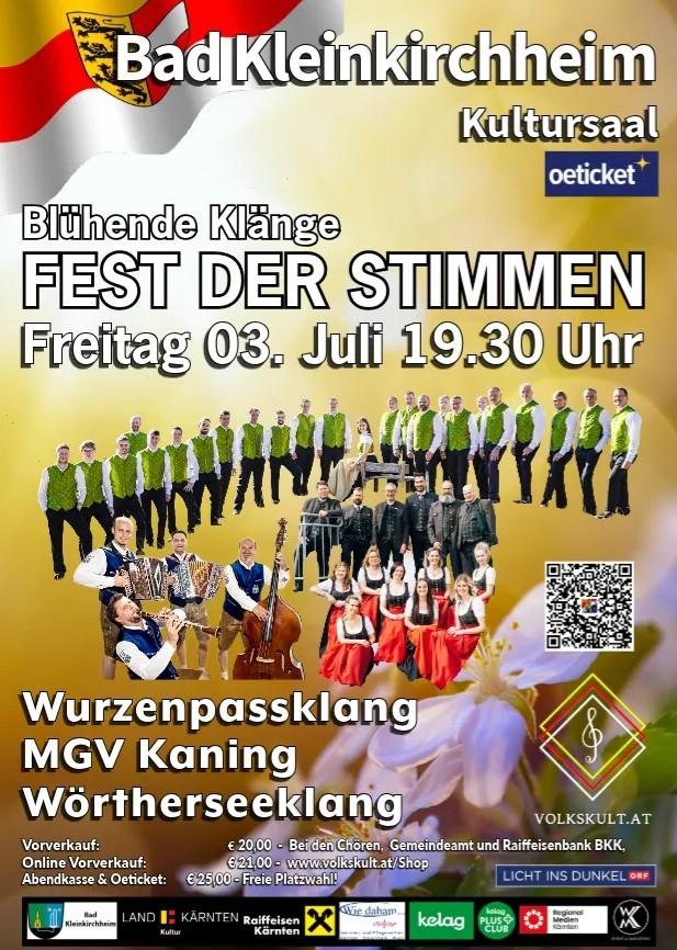 Das Fest der Stimmen war bis jetzt das Herbstprogramm unserer Konzertreihen, löst nun aber das Singen vom Feinsten im Frühjahr ab. Unser Anspruch ist es, eine Auswahl der besten Kärntner Chöre für Sie zu engagieren, um Ihnen das bestmögliche Klangerlebnis der schönsten Stimmen Kärntens zu bieten.