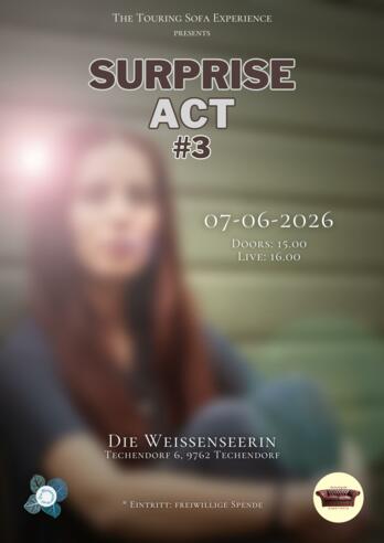 Wohnzimmerkonzert bei der Weissenseerin. Um 20:30 Uhr mit Surprise Act. Eintritt: Hutkultur – freiwillige Spende.