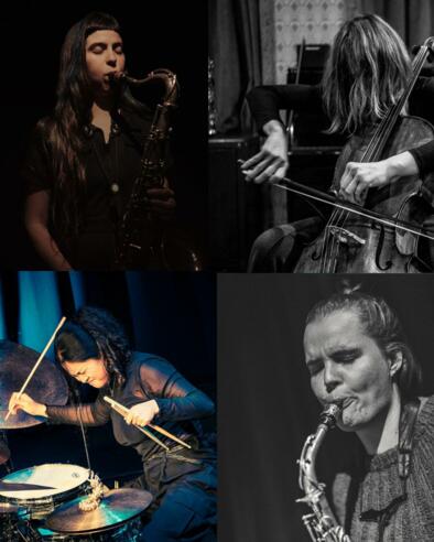 Vier Töchter, von denen mindestens drei nicht mehr in ihrem Mutterland leben und schon für Aufmerksamkeit in Saalfelden sorgten, bilden gemeinsam ihren Nährboden für Interplay und Improvisationen. Die Saxofonistinnen Amalie Dahl, Dänin und „Dafnie“-Leaderin in Oslo, und Camila Nebbia, Argentinierin in Berlin, die unter anderem auch ein eigenes Label mit Marta Sanchez betreibt, werden (nicht nur) rhythmisch von der in Amsterdam lebenden Koreanerin Sun Mi Hong am Schlagzeug und der Cellistin Elisabeth Coudoux aus Köln unterstützt. Der doppelgemoppelte Bandname ist Programm: Töchter an die Macht!