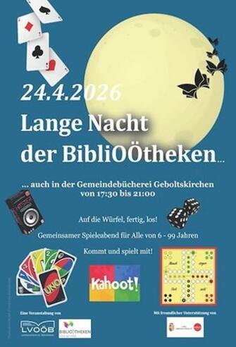 Lange Nacht der BibliOÖtheken auch in der Gemeinebücherei Geboltskirchen von 17.30 bis 21.00 Uhr.