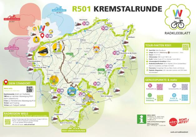 Am 15. und 16. Mai 2026 wird die Region Wels zum Hotspot für Radsportbegeisterte und Genussradler. Mit dem Event „mitRADLN“ feiert die neue Kremstalrunde R501 ihre offizielle Eröffnung. Als erstes von vier Blättern des „Welser Radkleeblatts“ verbindet sie auf rund 90 Kilometern Natur, Kultur und Kulinarik. Alle Teilnehmer dürfen sich auf ein buntes Rahmenprogramm, eine Firmen-Challenge und hochwertige Preise freuen. Die Routen- und Etappenwahl von 7km bis 90km ist frei wählbar und individuell nach eigenem Tempo zu fahren – ganz nach dem Motto: Radln – Rasten – Genießen!
