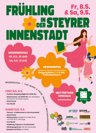 Die Steyrer Innenstadt-Kaufleute laden am 8. und 9. Mai zum beliebten Einkaufswochenende „Frühling in der Steyrer Innenstadt“. Zwei Tage lang wird die Innenstadt zum lebendigen Treffpunkt mit einem bunten Programm für die ganze Familie.