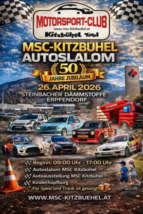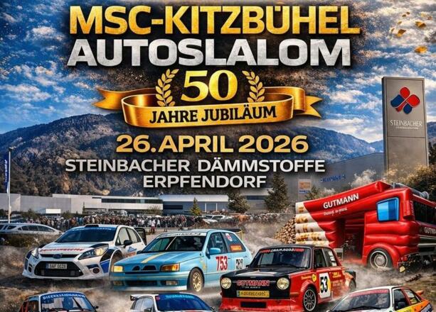 Der Motorsportclub Kitzbühel veranstaltet am Sonntag, 26.04.2026 auf dem Gelände der Firma Steinbacher in Erpfendorf eine Autoslalom-Veranstaltung.