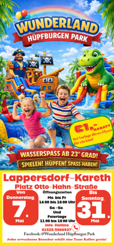Der Wonderland Hüpfburgen Park in Lappersdorf-Kareth lädt Familien zu einer erlebnisreichen Auszeit vom Alltag ein. In einer großzügig gestalteten Anlage erwartet Kinder jeden Alters eine vielfältige Auswahl an thematisch gestalteten Hüpfburgen – von fantasievollen Dinosaurierwelten über bekannte Superhelden bis hin zu einer eindrucksvollen Piratenschiff-Attraktion.