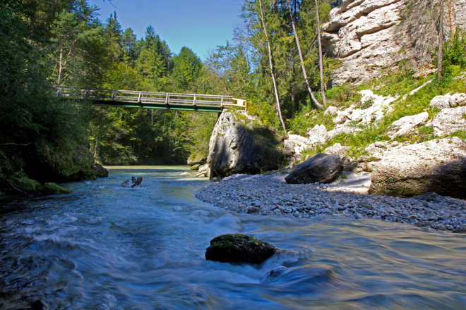 Wanderung am imposanten Steyrfluss am linken Ufer der Krummen Steyrling, wo immer wieder Spuren der früheren Nutzung als Triftgewässer sichtbar werden.