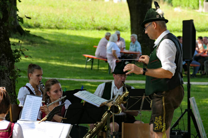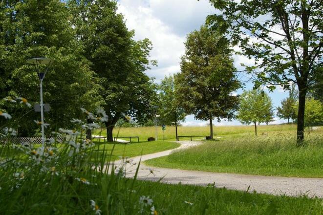 Unsere grüne Lunge mit üppigem Baumbestand, munterem Bächlein und Blick auf die Chiemgauer Alpen beherbergt eine Kneipp-Anlage, einen Kinderspielplatz sowie den Geomantie- und Radiästhesie-Lehrpfad. Während der Sommermonate lauschen Gäste im Musikpavillon gern den Konzerten der Musikkapelle. Wer eine Partie an der benachbarten Minigolfanlage gewagt hat, kann sich auf einer der lauschig liegenden Bänke ausruhen oder über die weitläufigen Spazierwege schlendern. Wahrlich eine Oase der Ruhe und Entspannung.