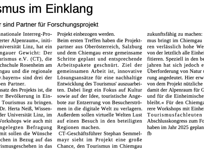 Forschungsprojekt Nachhaltiger Tourismus gestartet