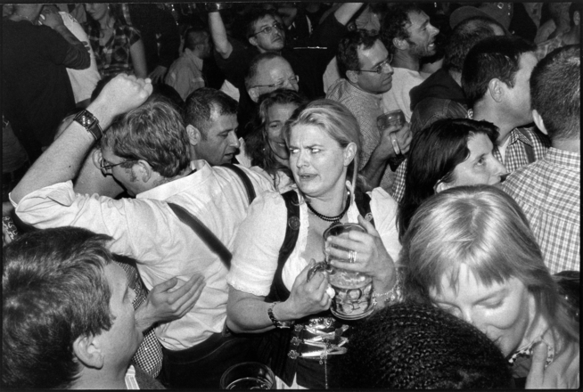 Derlaths Oktoberfest-Bilder aus den vergangenen 35 Jahren erinnern in ihrer Konzentration auf das Wesentliche an Bühnenfotos. Hier inszeniert nicht der Fotograf, sondern das Leben selbst. Die Hauptdarsteller*innen: ausgelassen feiernde Menschen im Spannungsfeld von Ekstase und Delirium, Leidenschaft und Zärtlichkeit. Jedes Bild steht für sich, und doch scheint es nur ein Ausschnitt zu sein aus einem großen Panorama, aus einem menschlichen Wimmelbild.