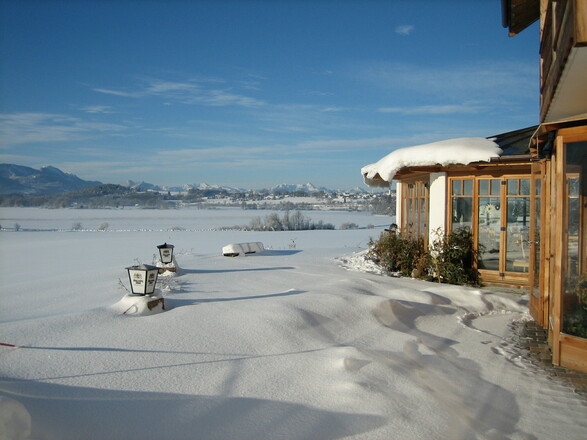 Am Nordufer des Chiemsees gelegenes Café - Restaurant mit Blick über die Schafwaschener Bucht und die Chiemgauer Berge. Direkt am Chiemsee Uferweg. 3 Ferienwohnungen mit Galerie (Schlafraum), Küchenzeile, Kühlschrank, SAT-TV, Balkon, großes Bad.