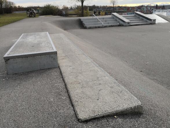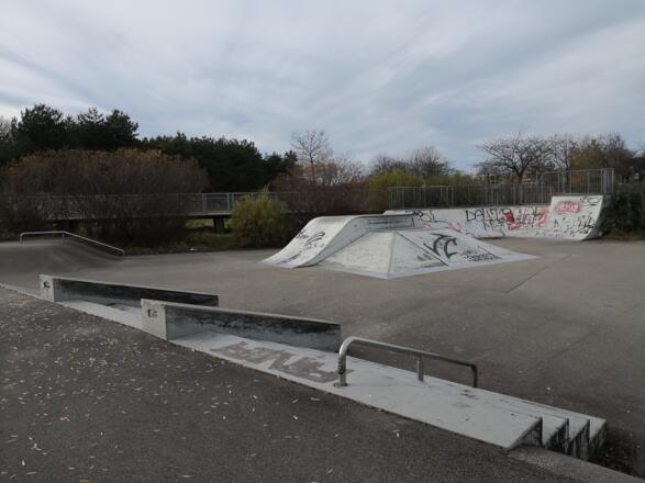 Der im Grünen liegende 1500 qm große Fertigbau bietet durch seine Vielzahl an Obstacles Fahrvergnügen für mehr als nur Skateboarder. Vor allem Scooter und BMX-Fahrer kommen aufgrund der Größe der Obstacles voll auf ihre Kosten. Auch das Skatepark Mobil fährt den Park regelmäßig von Mai bis Oktober an, um das Skaten allen Interessierten näherzubringen. Hier kann man sich Skateequipment kostenlos ausleihen und unter der Anleitung von Coaches das Fahren erlernen. Vor allem im Sommer lohnt es sich, vorbeizuschauen, da man nur einen fünfzehnminütigen Fußweg vom BUGA-See entfernt ist, um sich abzukühlen.