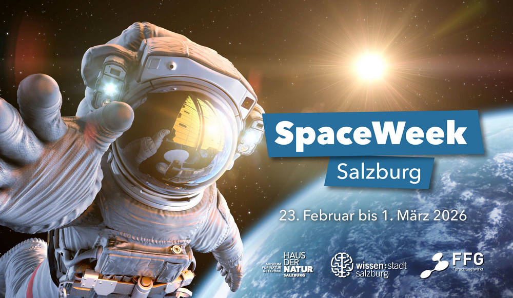 Mit zwei Sonderausstellungen „Mars – Die Entdeckung des Roten Planeten“ und „INNOspace ALL.täglich!“ sowie der Dauerausstellung „Unser Universum“ bietet das Haus der Natur derzeit einen Schwerpunkt zu Weltall und Raumfahrt. Passend dazu organisieren wir in Zusammenarbeit und mit finanzieller Unterstützung der Wissensstadt Salzburg und der Österreichischen Forschungsförderungsgesellschaft (FFG) die „SpaceWeek Salzburg“ vom 23. Februar bis zum 1. März 2026.