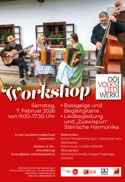 Workshop für Bassgeige & Begleitgitarre sowie Liedbegleitung & Zuawispün für Steirische Harmonika