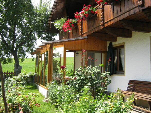 Gemütliche Ferienwohnung im Erdgeschoss, bedingt behindertengerecht, 1 Schlaf- und 1 Wohnschlafzimmer mit Küchenzeile, DU/WC, SAT-TV, Zentralheizung. Ruhige Lage am Ortsrand, 10 Gehminuten in das Zentrum von Prien am Chiemsee. Kinderbett und Zustellbett auf Anfrage!